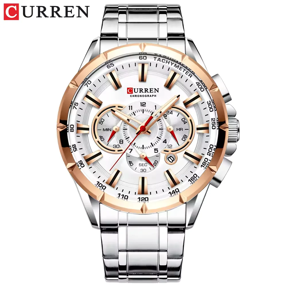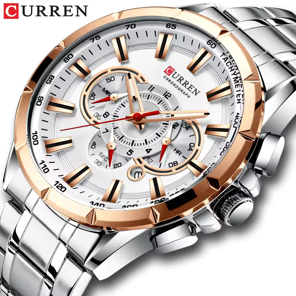 Reloj para Hombre Marca CURREN con Pulso de Acero Inoxidable y Cronógrafo de Tres Esferas Modelo 8363-4