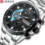 Reloj para Hombre Marca CURREN con Pulso de Acero Inoxidable y Cronógrafo de Tres Esferas Modelo 8395-2